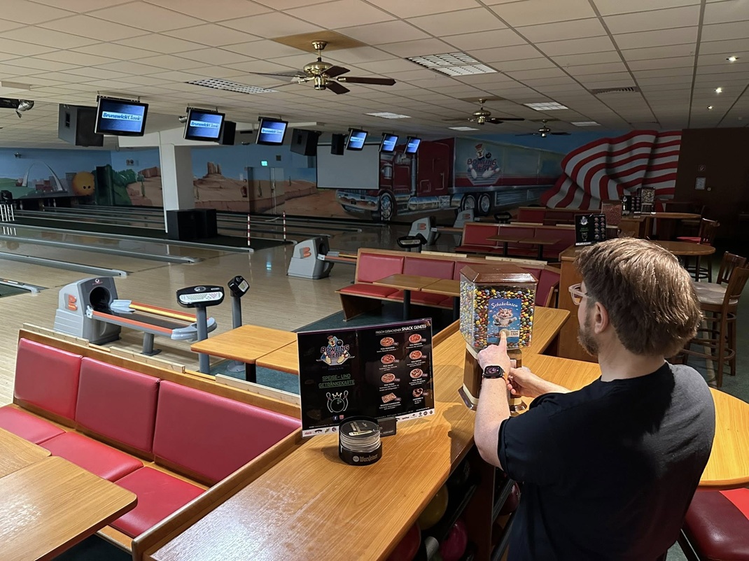 (vn) Am 4. August trainierte Frank schon einmal mit seinem Freund Thomas A. im Elitebowling Bielefeld. Allerdings waren sie über die hohen Stundenpreise erstaunt.