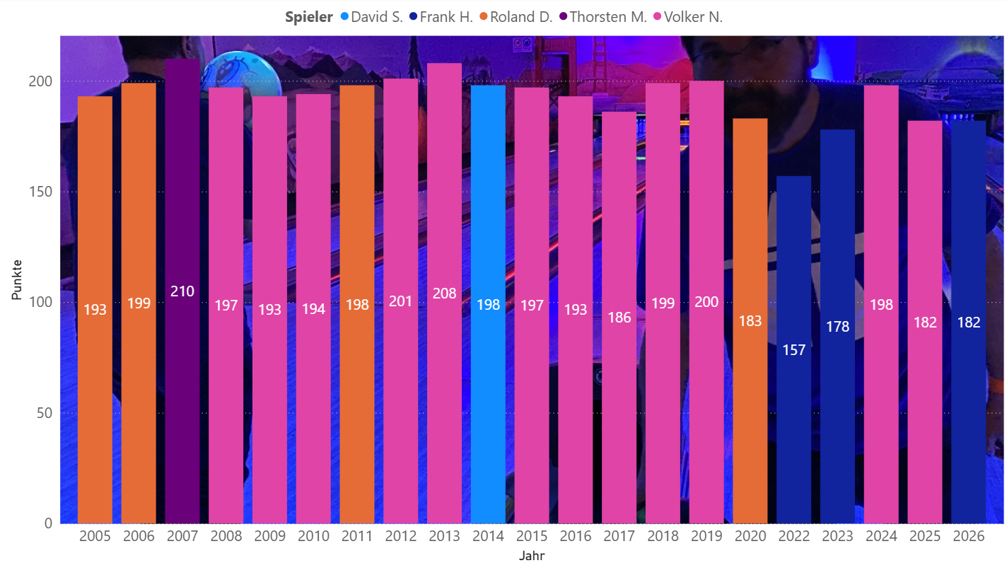 (vn) Nach dem eher mäßigen Jahresauftakt bei Bowling B68 legten sich Frank, Roland und Volker in Lippstadt richtig ins Zeug. Nachdem Volker die Jahresbestleistung auf 161 Punkte schraubte, folgte Frank ein Spiel später mit 168 Zählern um dann im dritten Spiel die neue Bestleistung mit 182 Punkten zu erreichen. Nur 11 Punkte unter seiner Bestleistung!
