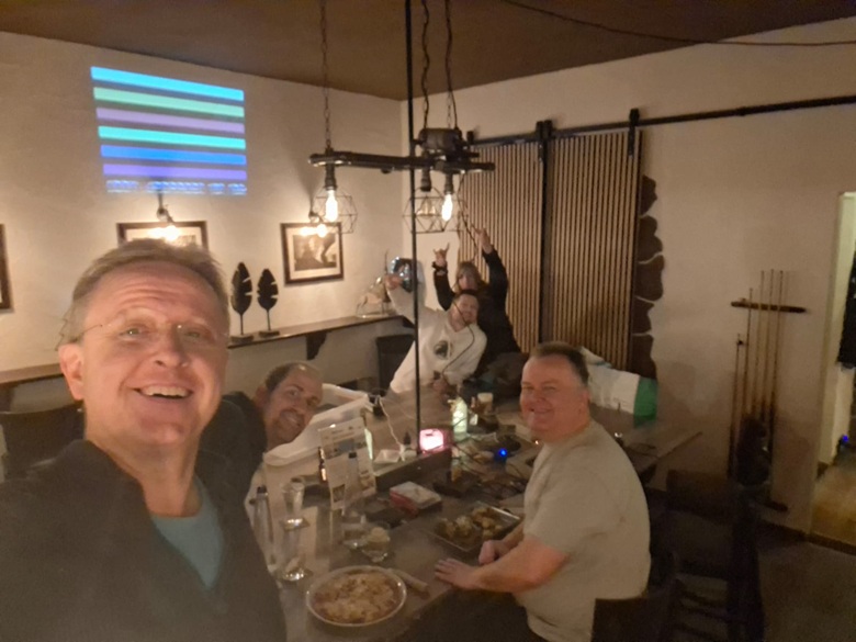 (vn) ...wurde es nicht gerade. Und das obwohl es nur fünf Recken zum letzten Stammtisch 2025 schafften. Und Miri in der kleinen Runde auch noch Wichtelgeschenke verteilte, siehe Bild unten.